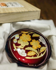 For this kneaded Inkpads, we offer a special Nikko-in Premium Four Season Kneaded Vermilion Inkpad. It is a safe and nature-friendly organic kneaded vermillion inkpad of the highest quality. The case was lacquered with a makie painting in Aizu, Fukushima.