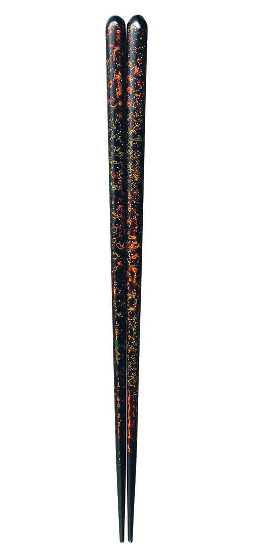 Powdered abalone shell is mixed into the lacquer, giving the chopsticks a unique, glittery finish.