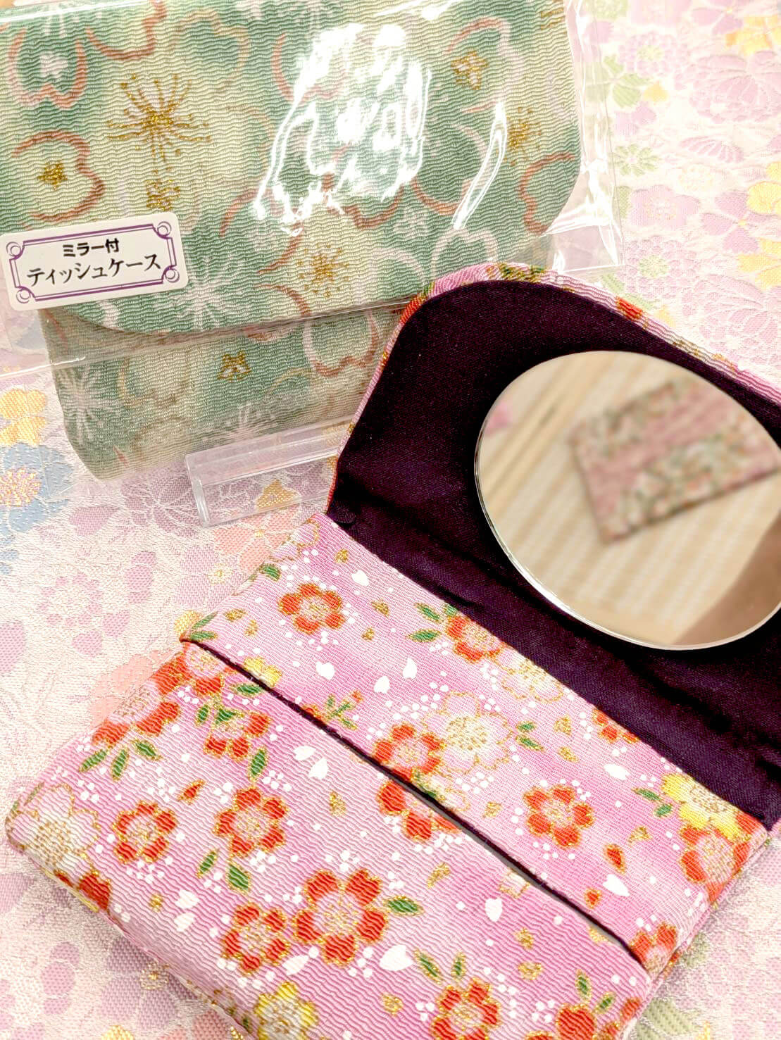 The tissue case includes a small mirror, making it convenient for quick makeup touch-ups.