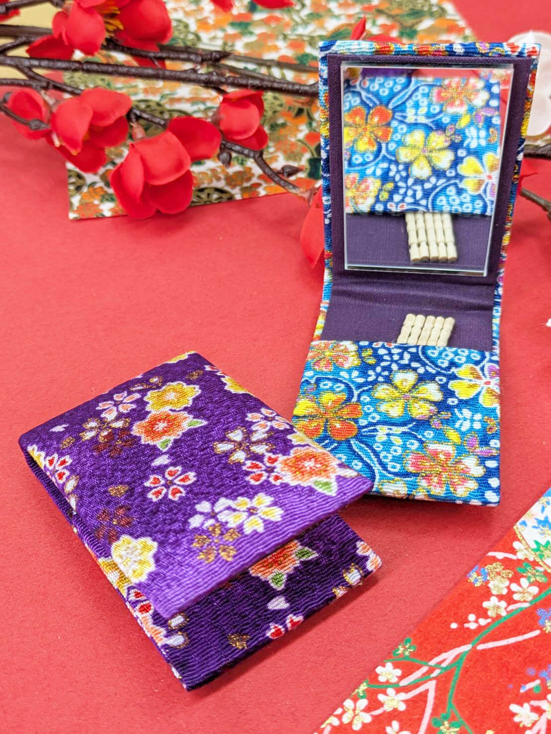 Toothpicks are commonly used in Japan by men and women after meals. This pretty little case has a compartment to store 5-10 toothpicks so you and your friends will never need to worry about food in your teeth! The case opens up to reveal a small compact mirror, to make dental hygiene a breeze.