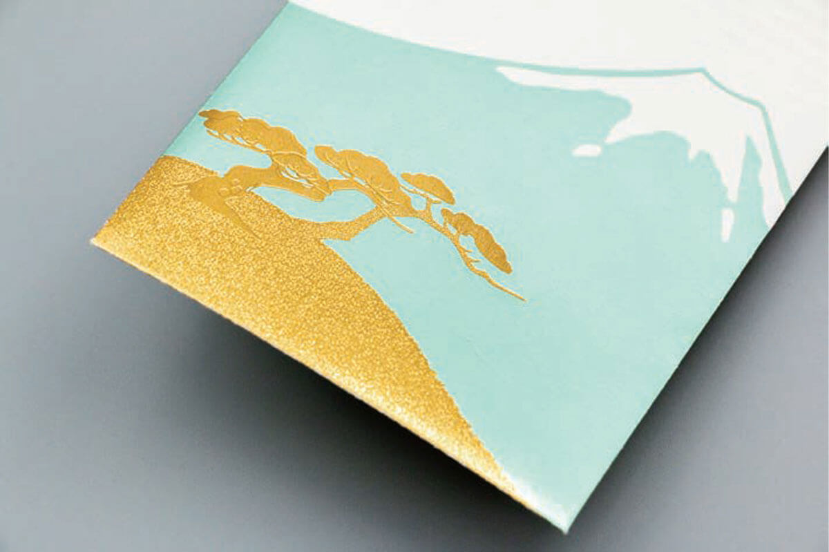 The design combines mountains, rivers, and sea motifs with elegant Japanese decorative elements.