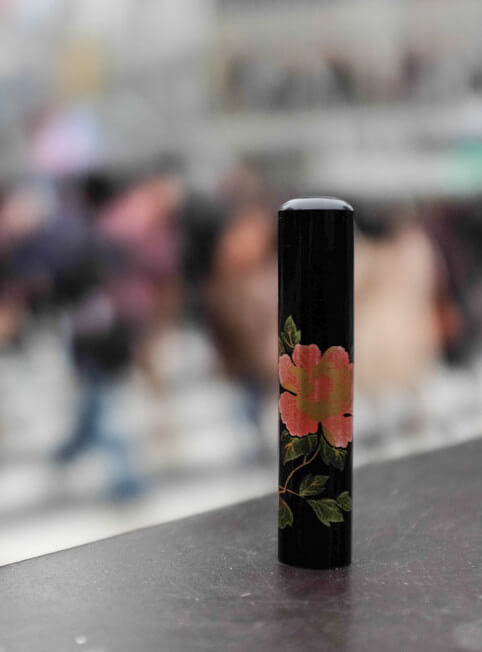 Makie is a unique Japanese lacquerware art, and is one of the most popular hanko styles in Japan. This style began during the Nara period (8th century). Patterns are drawn in lacquer, then powdered with gold, silver or tin, and then colored powders are gently sprinkled over the patterns to add color and dimension, as if sowing seeds. The “Maki” in “Makie” means to sow, a reference to this action.