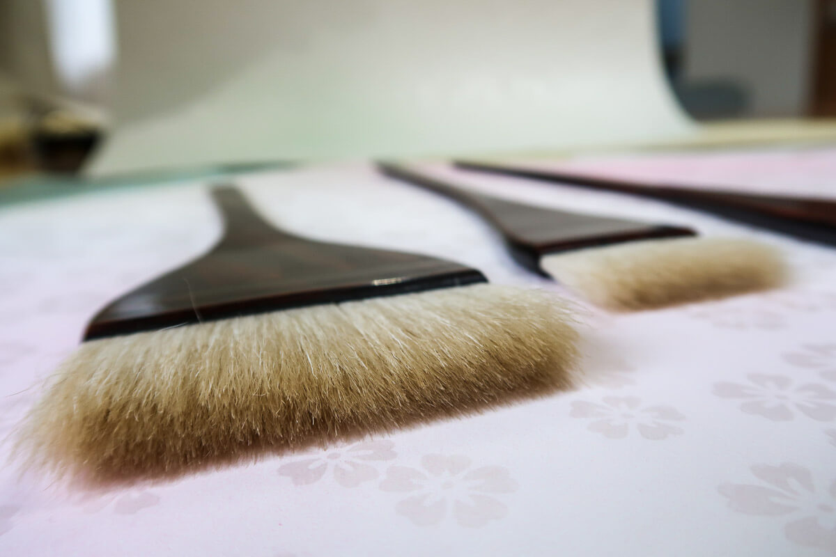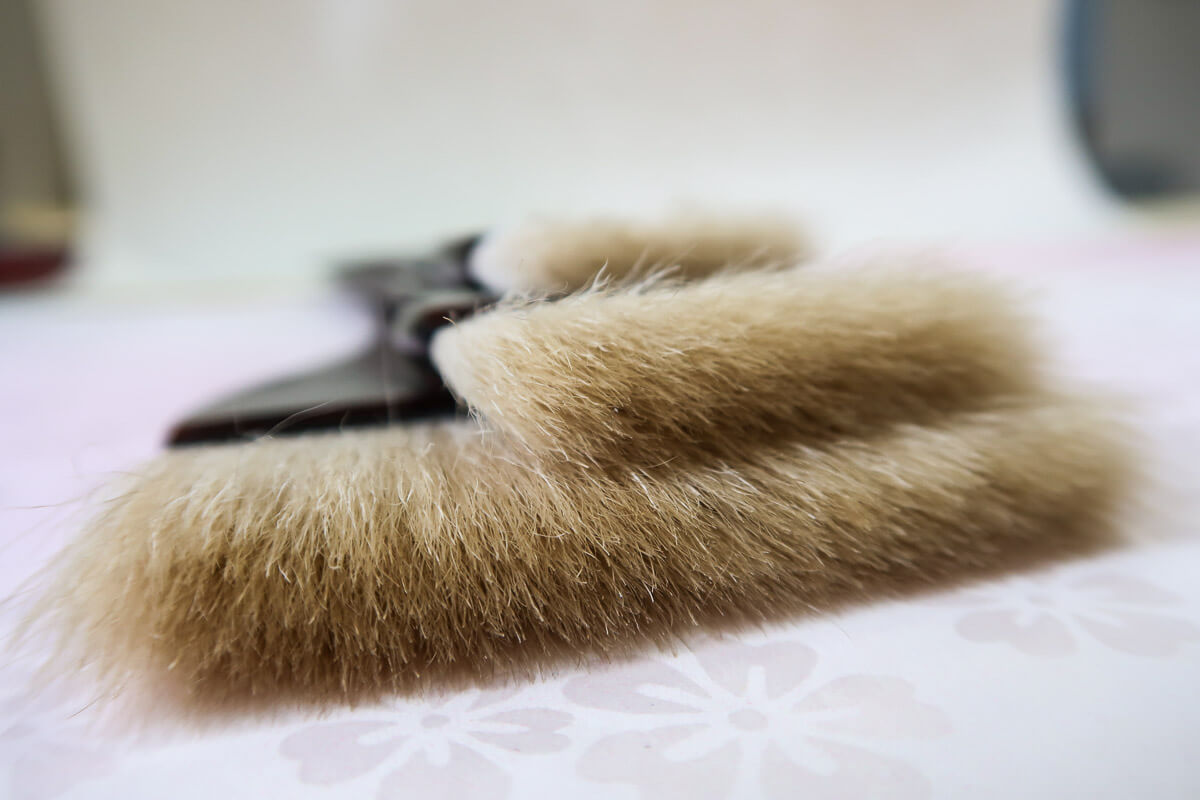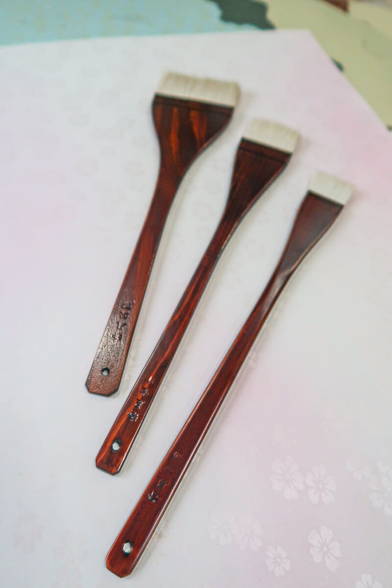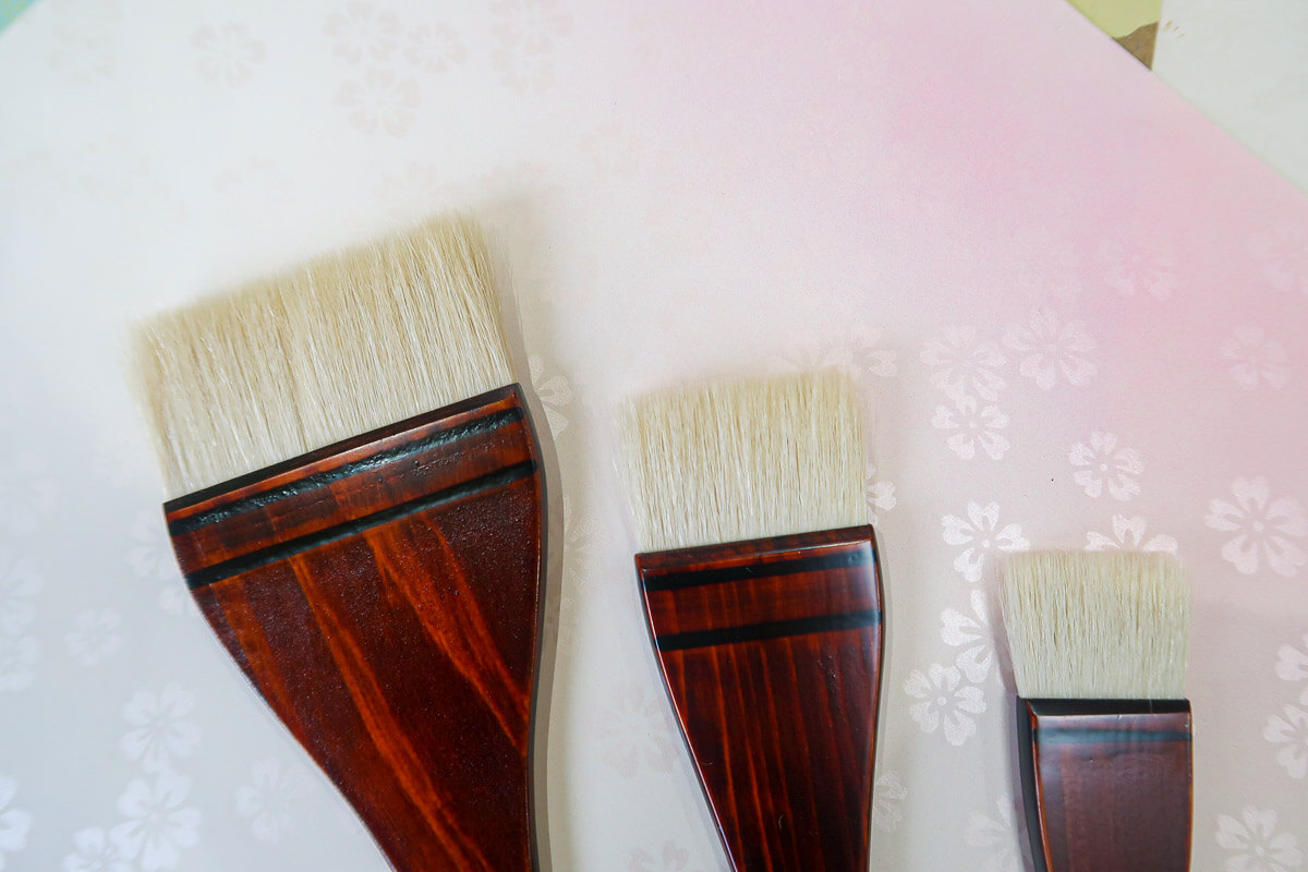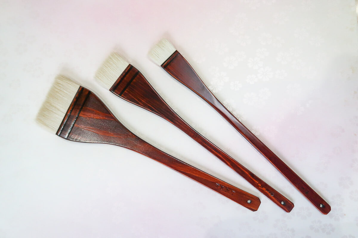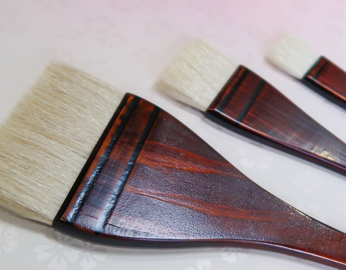 This Nurigara Brush is used for painting with oil-based/Mercury paint, varnish, etc. About 70% of the total brushwork of the Edo period were done with this brush. This high quality wide brush is made of horsehair (tail, body, leg) and wool are used as hair materials.