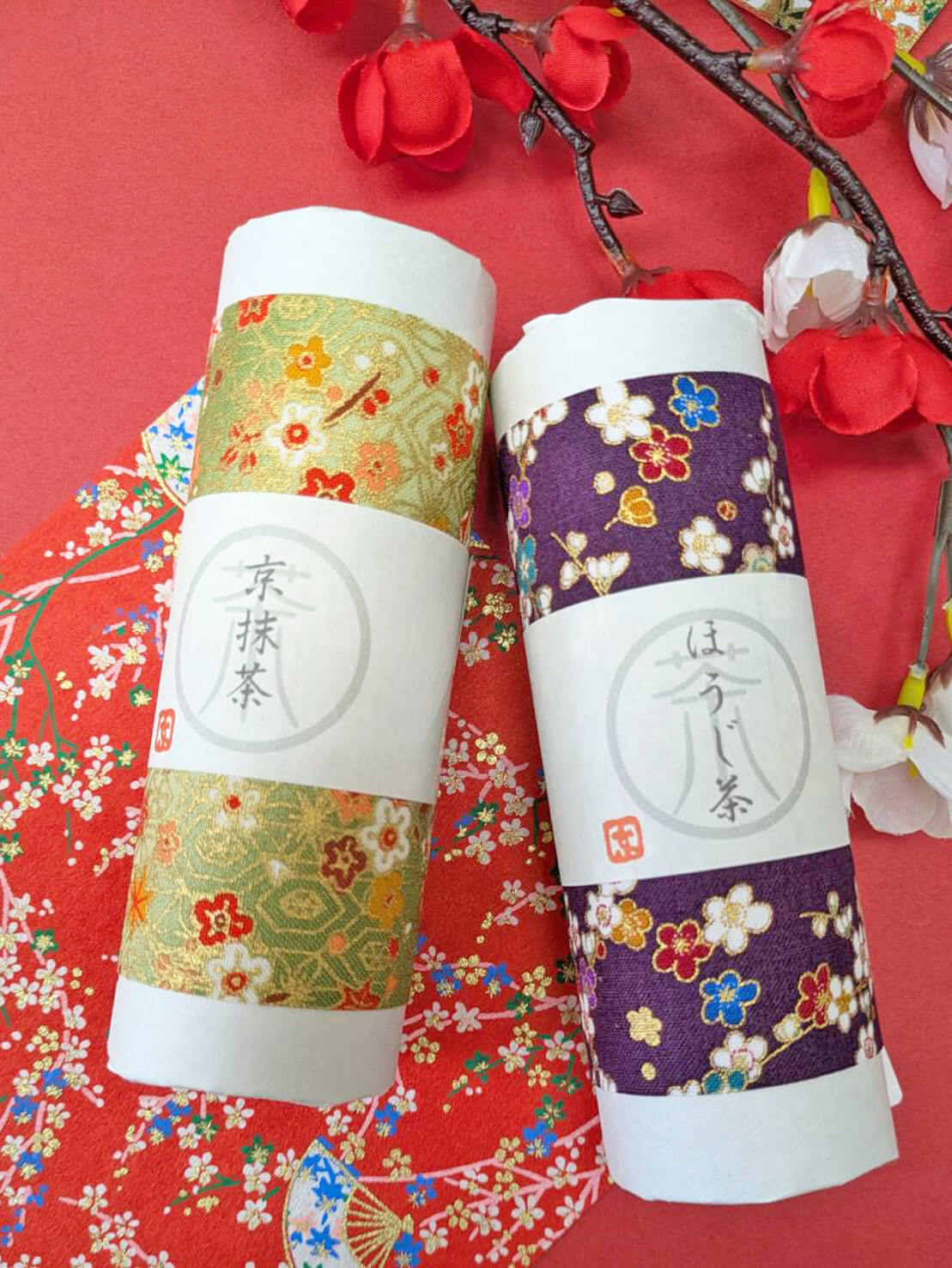 Matcha and its roasted counterpart, Hojicha. Both are contained in this splendid gift pack Matcha powder (4 packets) Hojicha tea bags (3 packets)