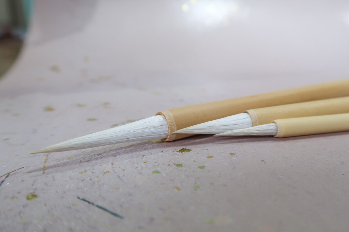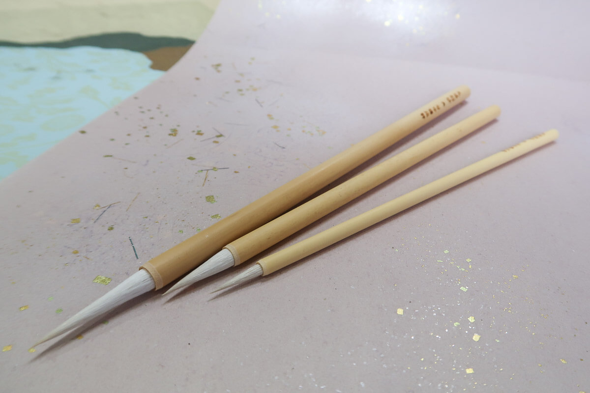 Widely used in many kinds, from drawing thin lines to coloring. The brush is made by goat and horsehair, this brush is suitable for natural style painting. Although this type of brushes is mainly used for watercolor paintings, it is also used for Sumi (black ink) and acrylic paintings.