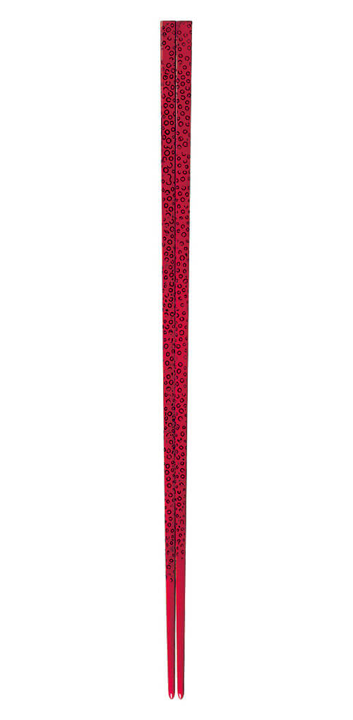 The bubbly motif is produced through a special technique called Tsugaru Nanako-nuri, where rapeseed is sprinkled over the chopsticks during the lacquering process. When the seeds are later scraped off, the circular impressions are left, producing its signature motif.